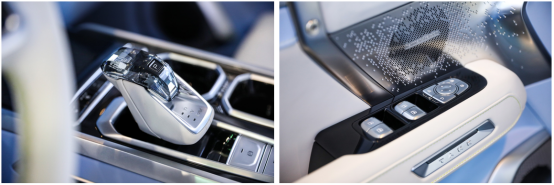內飾以“壯麗山河”的恢弘場景為設計靈感,簡約而不簡單,奢華而不浮夸,打造典雅、精致、奢華的車內座艙。其中,12.3寸數字儀表,配合14.6寸中央觸控屏,以及后排控制屏,“三屏聯動”極具科技感。座椅皮質甄選進口頂級Nappa真皮,溫潤細膩。副駕駛飾板,極具“東方神韻”,呈現出一幅優美的“山水畫廊”。水晶擋桿擁有66個鉆石切割型面,靈動璀璨,匠心獨運。